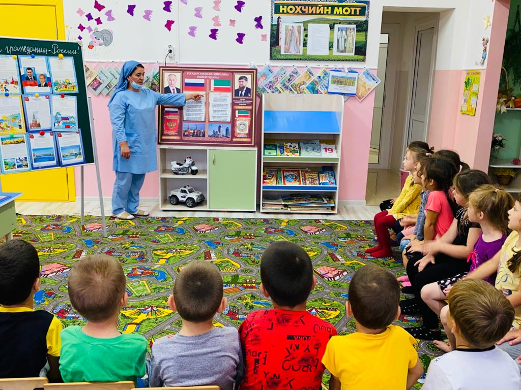 02.09.2021С целью воспитания у детей чувства патриотизма, любви к малой Родине 02.09.2021г. в подготовительной группе были проведены тематические беседы, приуроченные ко Дню Чеченской Республики на тему: «Я – Гражданин своей страны».