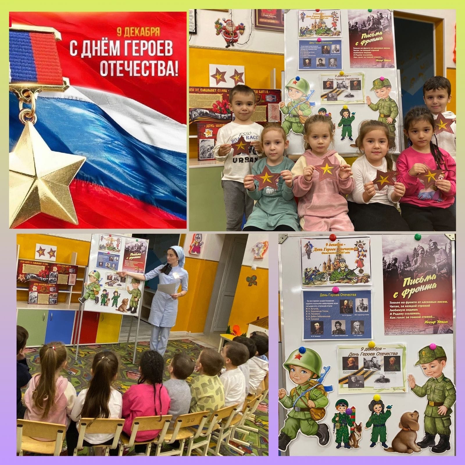 9 декабря в России празднуют День Героев Отечества. День Героев Отечества в нашей стране– это памятная дата, которая отмечается 9 декабря. В честь этой даты в нашем детском саду прошли мероприятия, цель которых – формирование у дошкольников чувства патриотизма, чувства гордости и уважения к воинам, защитникам Отечества.