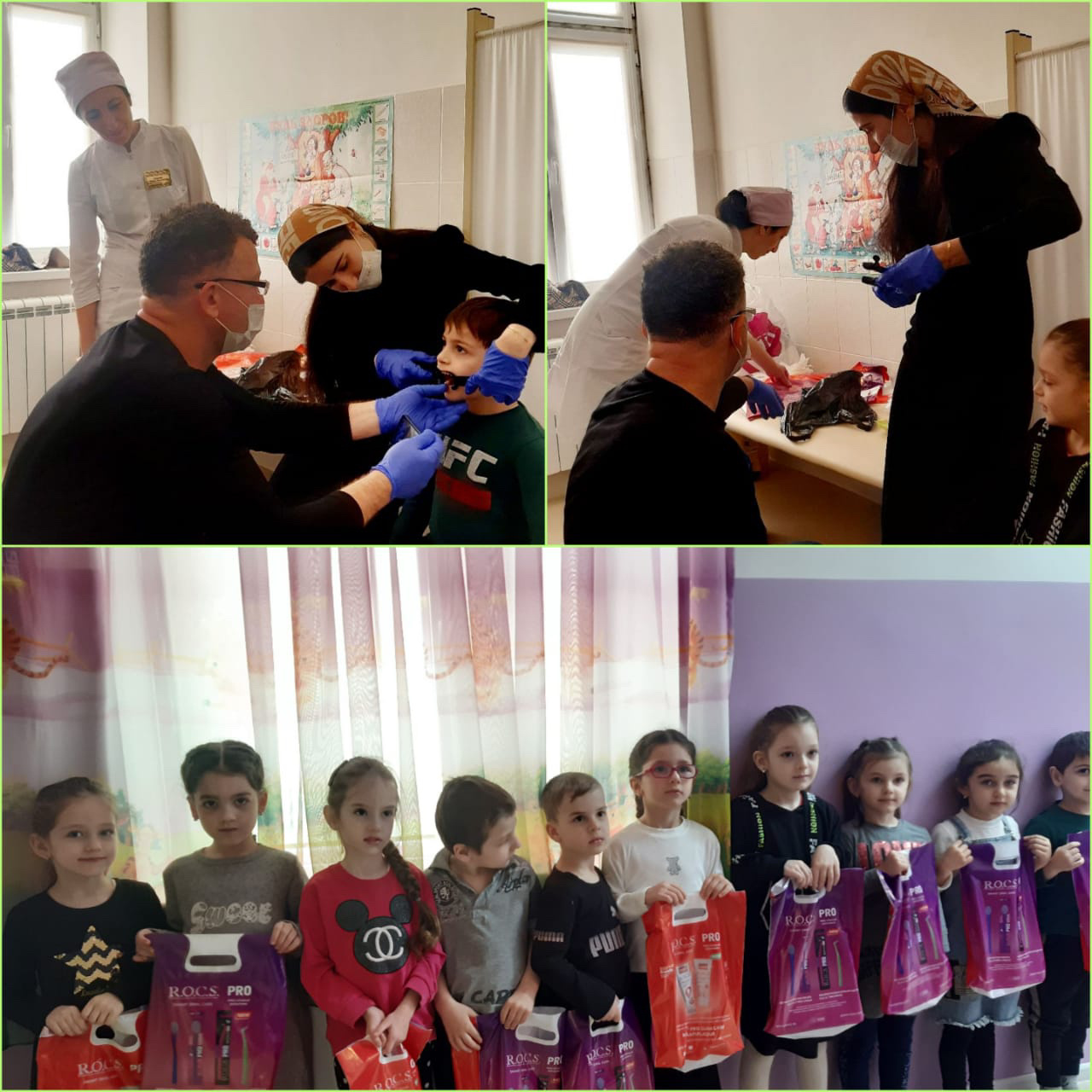 В рамках научно-исследовательской работы "Ранняя профилактика и диагностика стоматологических заболеваний у детей дошкольного возраста Северного Кавказа" проводимой под руководством профессора Юсупова Р.Д. В нашем ( МБДОУ "Детский сад №4 "Нур" ) был проведен осмотр полости рта детям в возрасте от 3 до 7 лет. Где были выявлены такие проблемы как: кариес зубов, диастема зубов, скученность зубов, патология положения зубов, короткая уздечка верхней губы и языка. В свою очередь, детям были даны профессиональные рекомендации для устранения данных патологий.